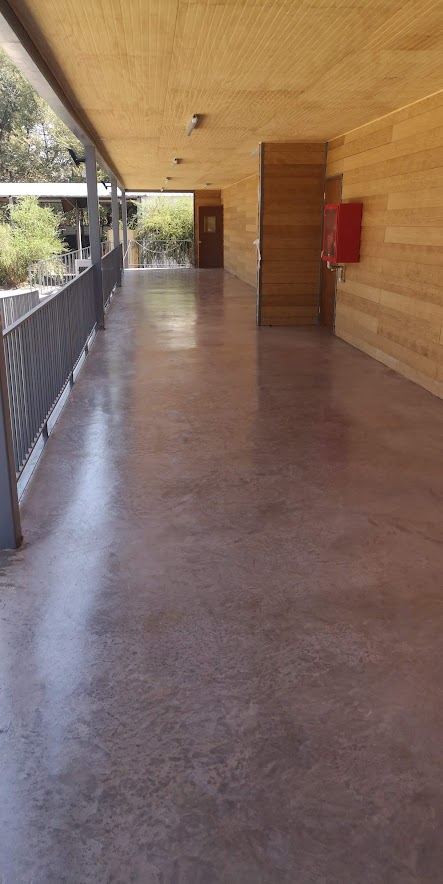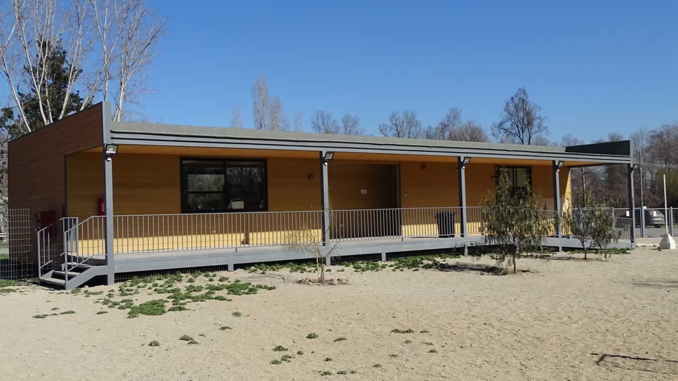 Colegio construido con una fundación aislada, techumbre con membrana asfáltica, piso de hormigón vitrificado y revestimiento con siding.
